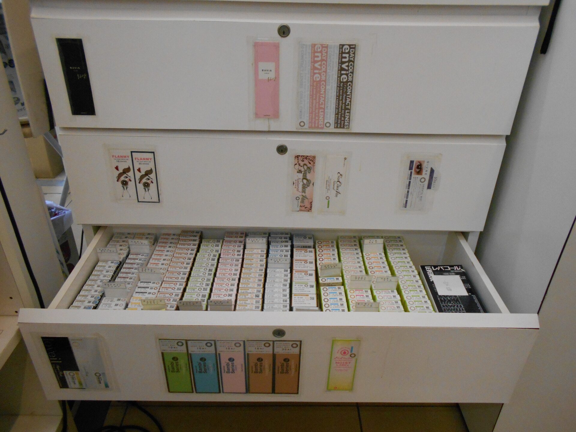 カラーコンタクトレンズでおしゃれしませんか? 2019.4.1 元気にする JR奈良駅前店 JR奈良駅前店のページへ移動する 新しいカラーコンタクトレンズも入荷しています。お客様のお好みは様々です。今月は、コンタクトレンズの在庫の整理をしました。お客様に少しでも早くお渡しできるように引き出しの上段から最近の人気商品順に並べ替えました。これでお渡しも少しですが早くできると思います。春のぽかぽか陽気におしゃれしてお出かけしませんか? After JR奈良駅前店 中井 智嘉子